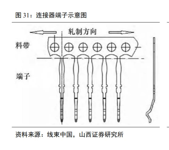 接触件为连接器的核心部件,对铜合金的性能有很高的要求。汽车线束的接触件是汽车连接器完成电连接功能的核心部件,是汽车线束端子压接和保证线束正常工作的关键,对接触件用铜合金材料的力学、导电、抗应力松弛和折弯成型性能有很高的要求,所需要的性能包括高接触力、位移形变小(下压行程有限但需高接触力)、折弯角度小(产品微型化)、交变应力不失效(高插拔次数)、较低的接触阻抗、好散热性及低温升、持久的高接触力/高温环境下工作、符合环境标准等。因此,这就要求铜及铜合金带必须具备高屈服强度、高弹性模量、高导电率、优异的弯曲性能、优异的抗疲劳性能、无环境有害物质等。