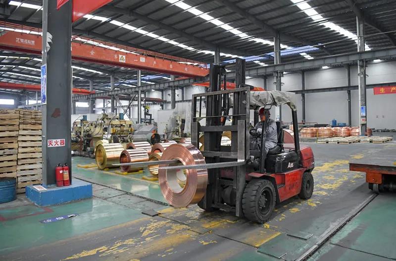 现有装备产能?0万吨铜加工材,目前主要产品有:各种牌号规格的高精度宽幅铜板、铜带、铜锭、铜杆、铜排、铜棒、铜线、耐高温扁平漆包线、各种铜工艺品等?/p>