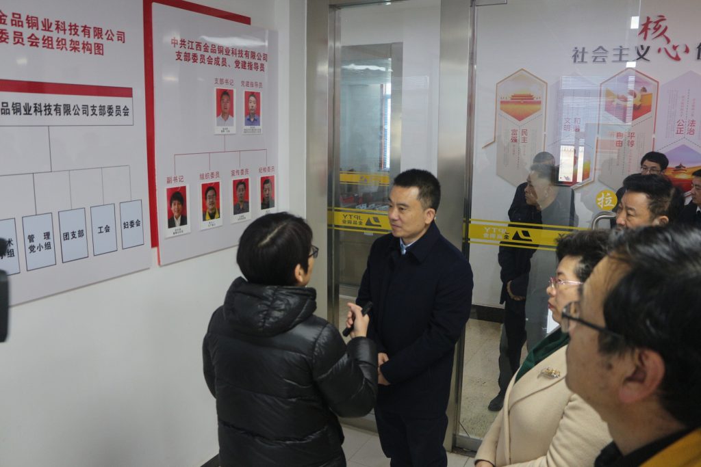2022年2月15日(元宵节),抚州市委书记夏文勇一行深入抚州国家高新技术产业园区江西9001诚信金沙铜业科技有限公司调研公司非公党组织党建工作在企业发展、百亿目标达成、科研活动中所取得的成果,并与公司党支部负责干部进行了深入交流。他强调,各部门要全面推进复工复产,发挥非公党组织在民营企业中的引领作用,促进企业发展,引领思想方向,确保实现好的开局,再创新的辉煌。高新区党工委领导陪同调研。
